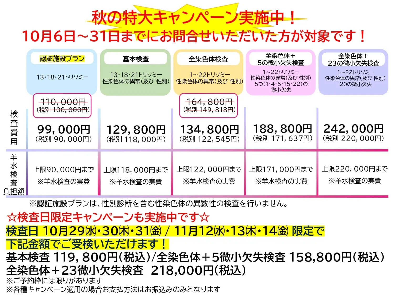 全染色体検査:税込164,800円(税別149,818円)